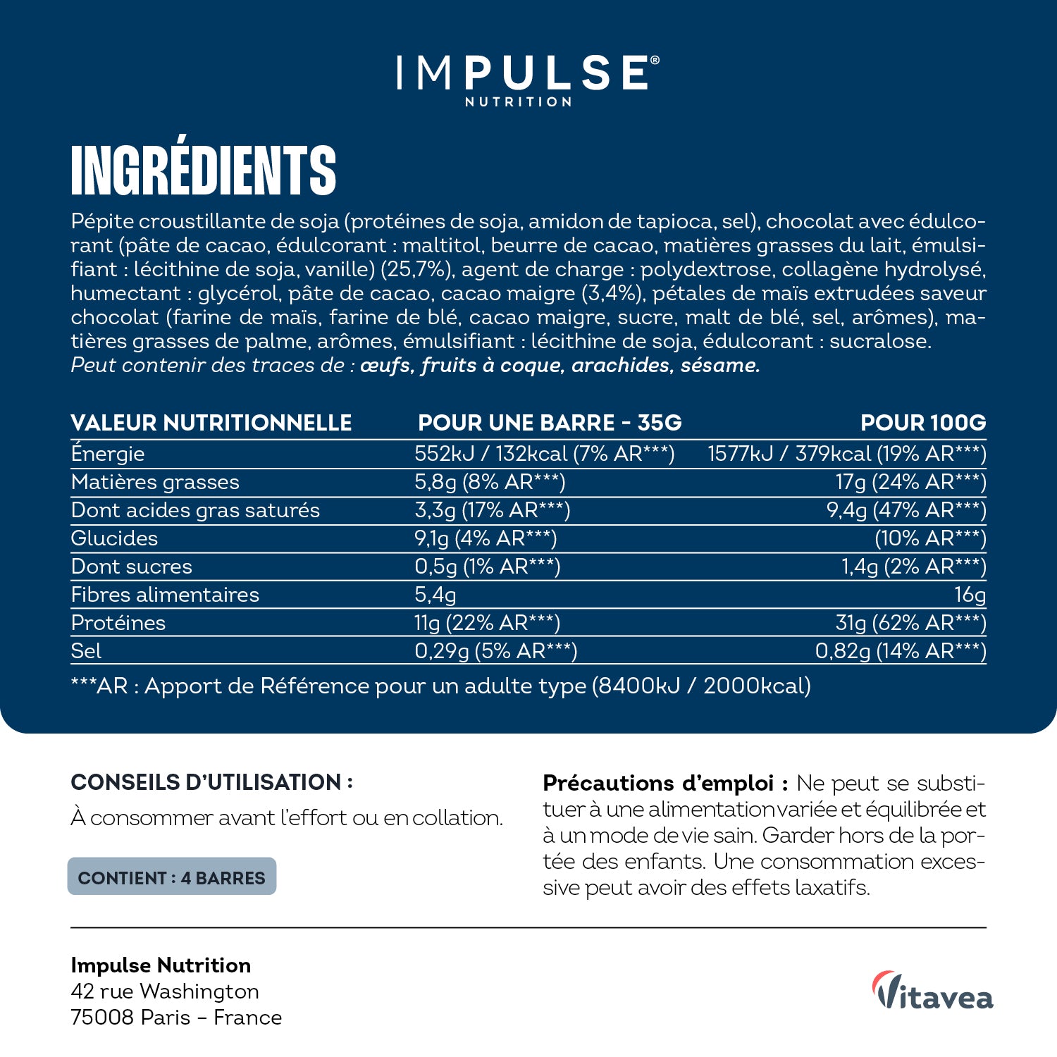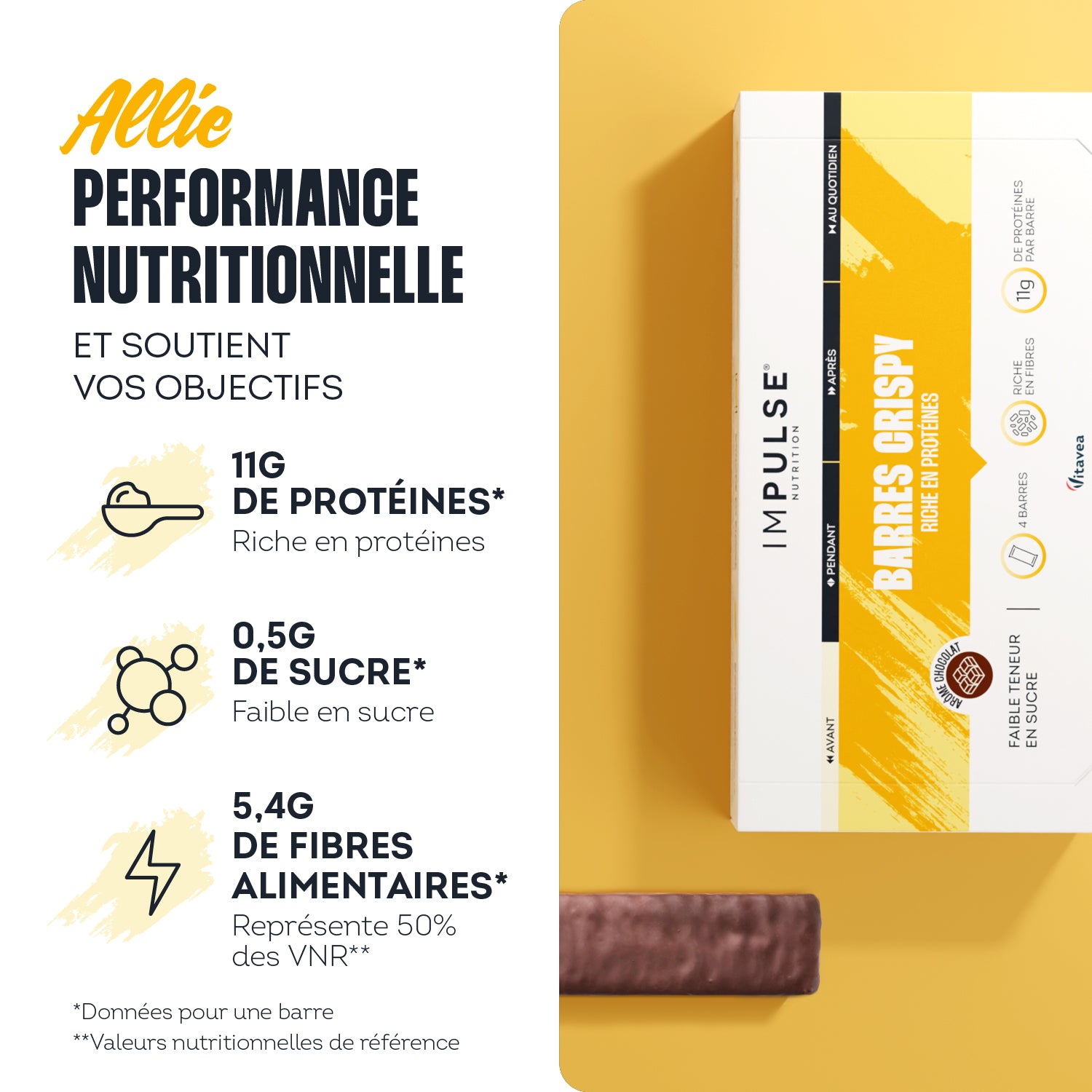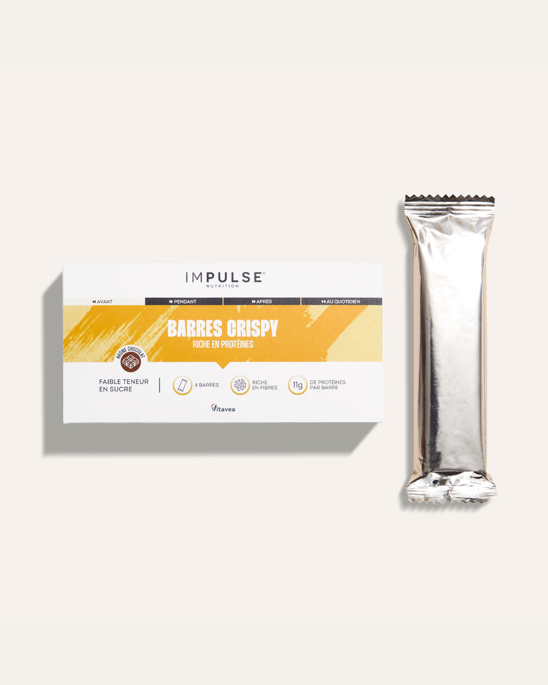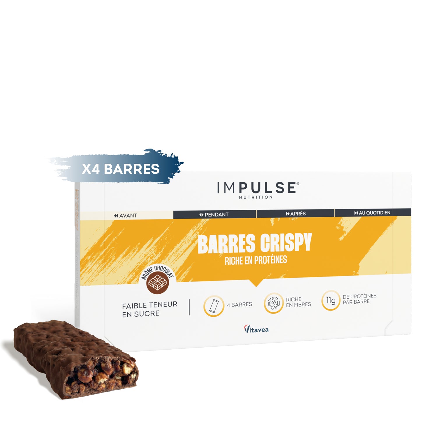 La BARRE CRISPY PROTÉINÉE IMPULSE NUTRITION, c’est l’alliance parfaite entre performance nutritionnelle et plaisir gourmand.