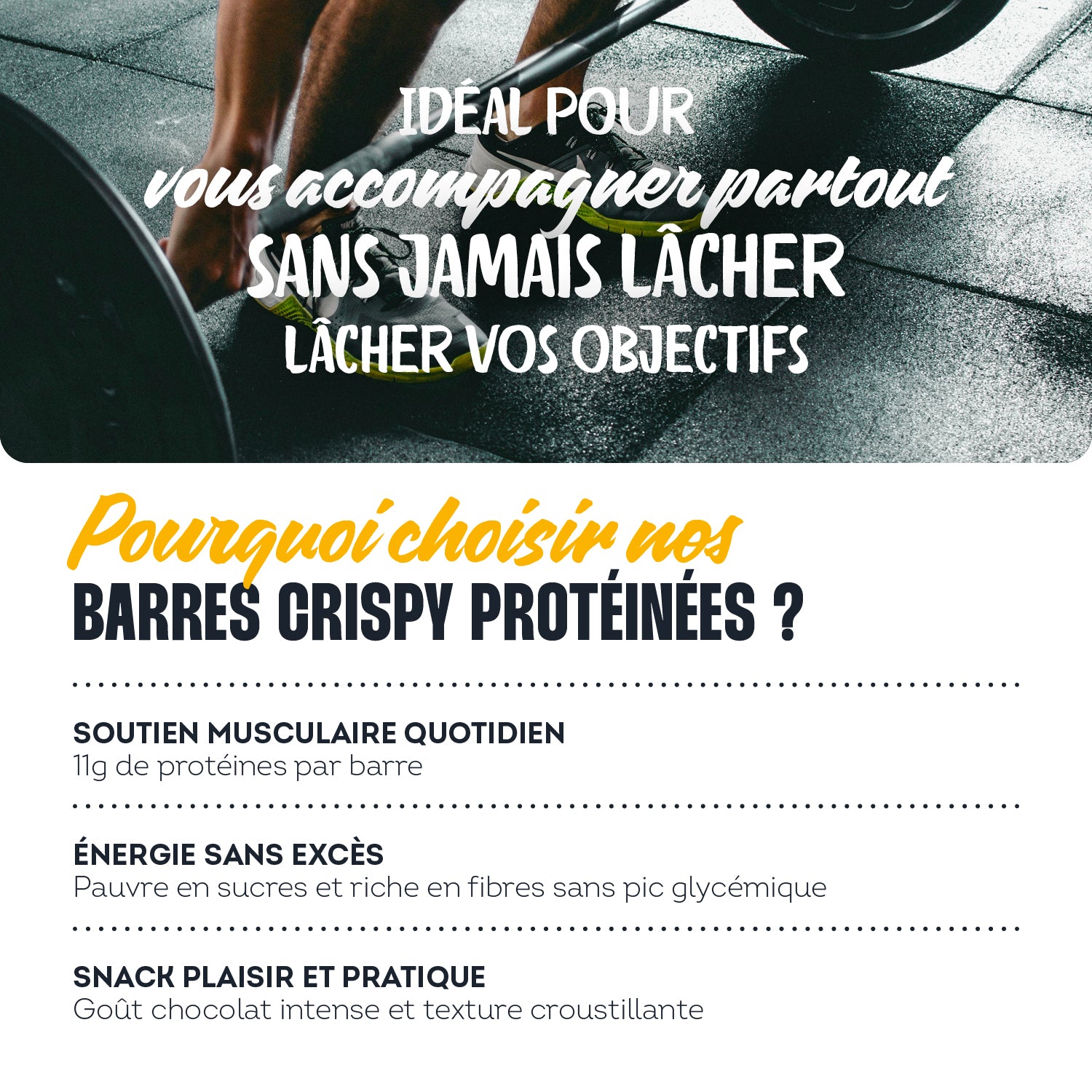Riche en protéine, une faible teneur en sucres et une texture croustillante, elle soutient vos objectifs sans compromis sur le goût.