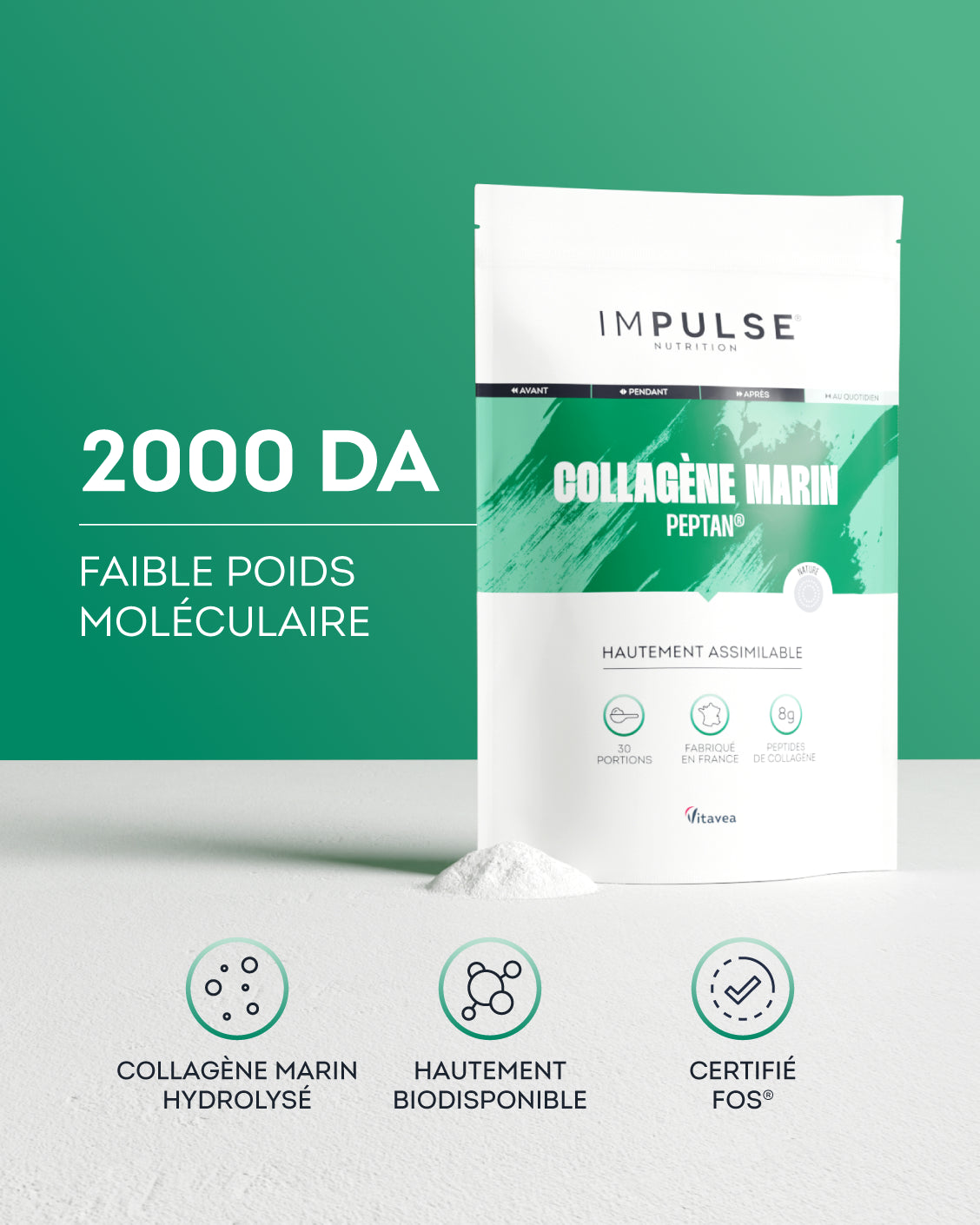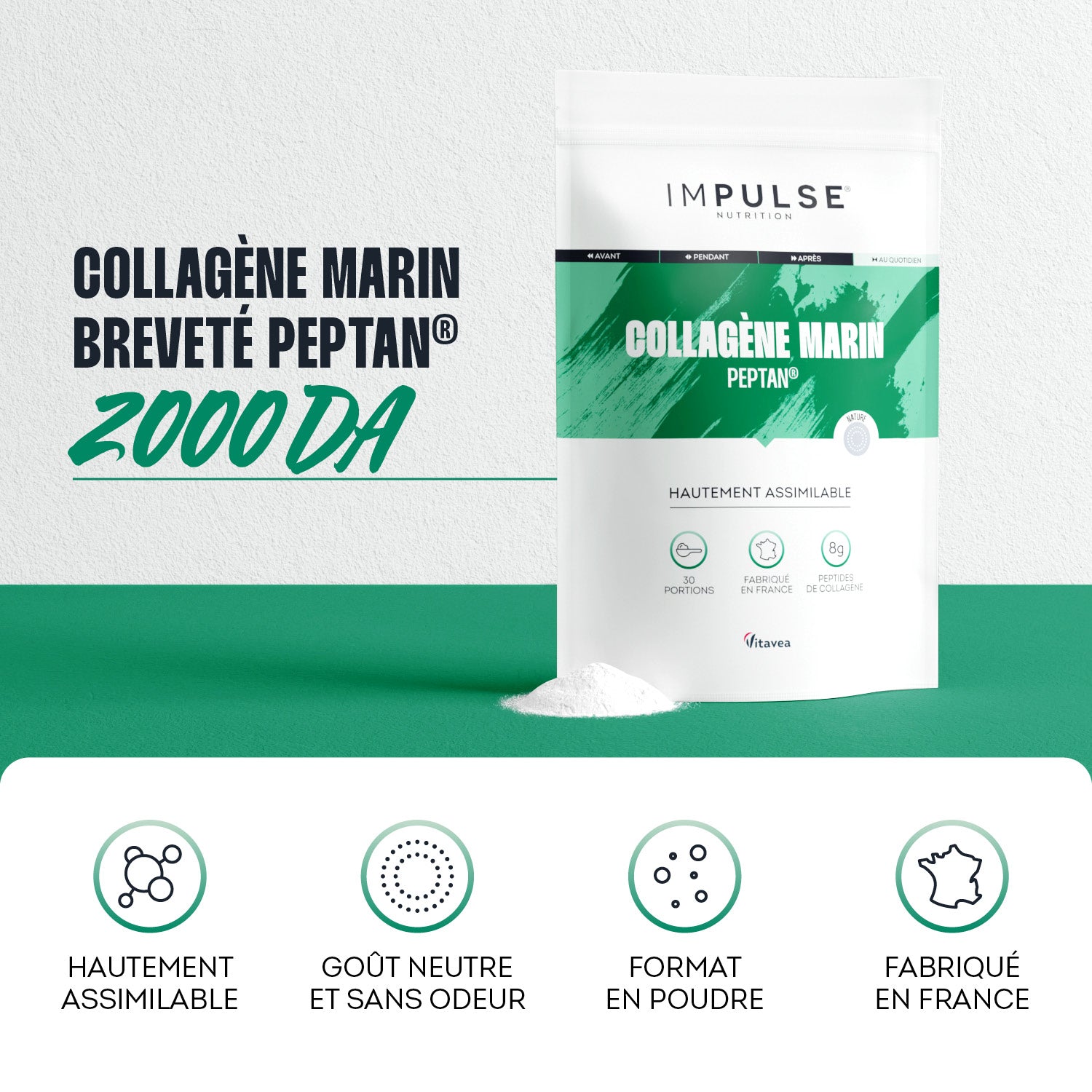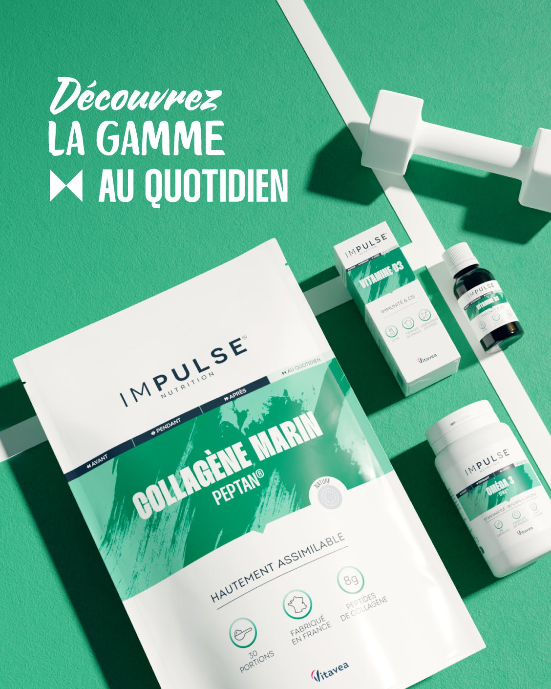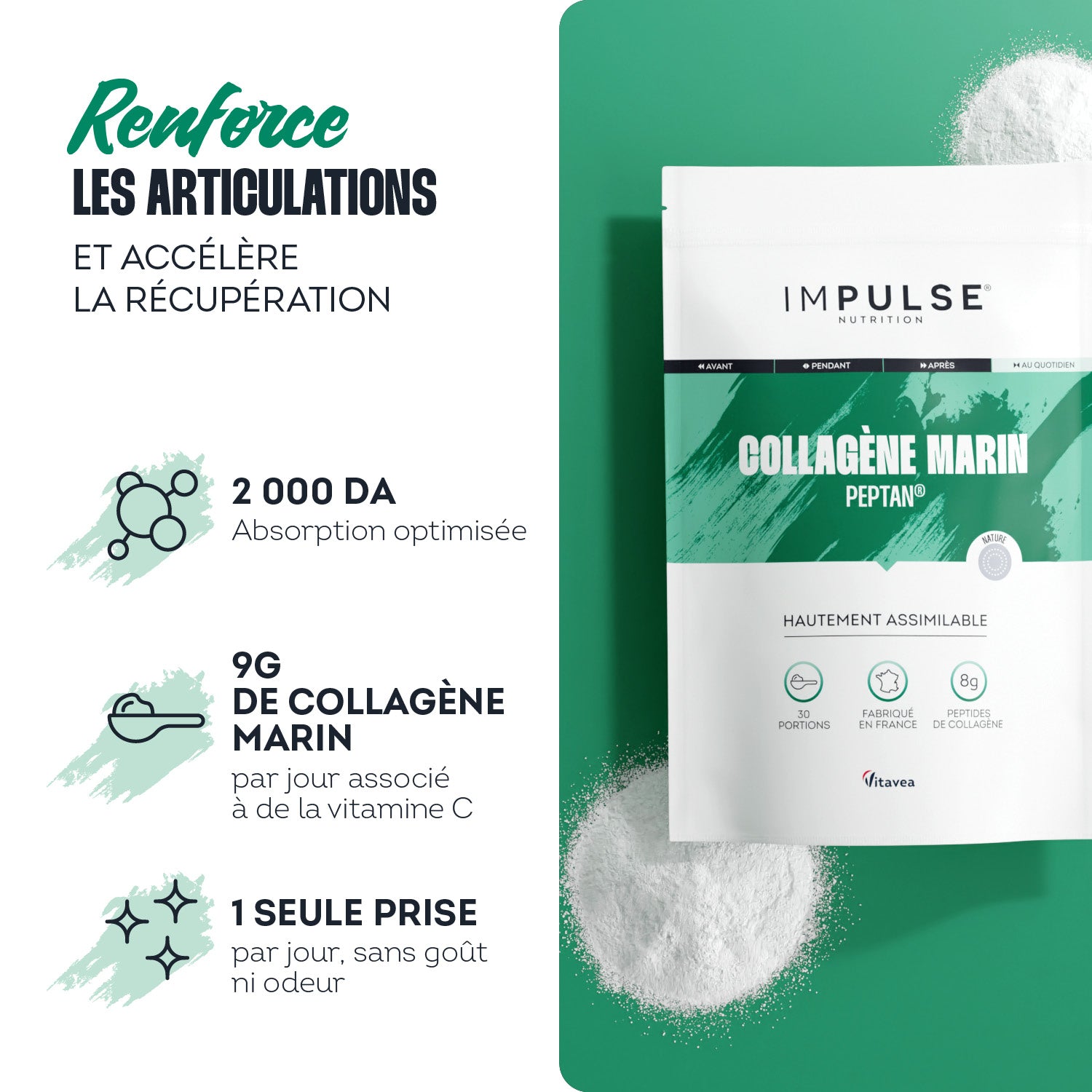 Le COLLAGÈNE MARIN IMPULSE NUTRITION, breveté Peptan®, est votre allié pour soutenir vos articulations, votre récupération et la jeunesse de votre peau.