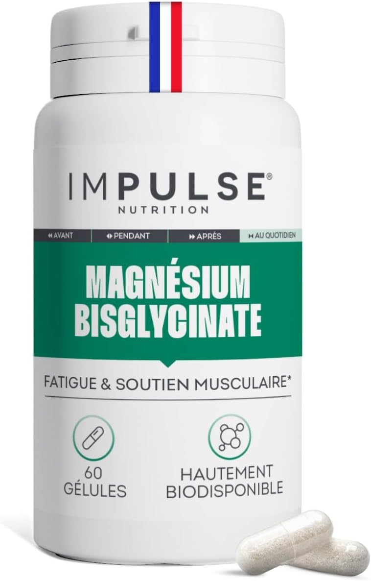 Le Magnésium Bisglycinate Impulse Nutrition a été formulé pour les sportifs et les personnes actives qui cherchent un minéral parfaitement assimilé, sans les troubles digestifs courants avec d’autres formes de magnésium. Le magnésium participe à plus de 300 réactions enzymatiques dans l’organisme, dont la contraction musculaire, la production d’énergie cellulaire et la régulation du système nerveux.