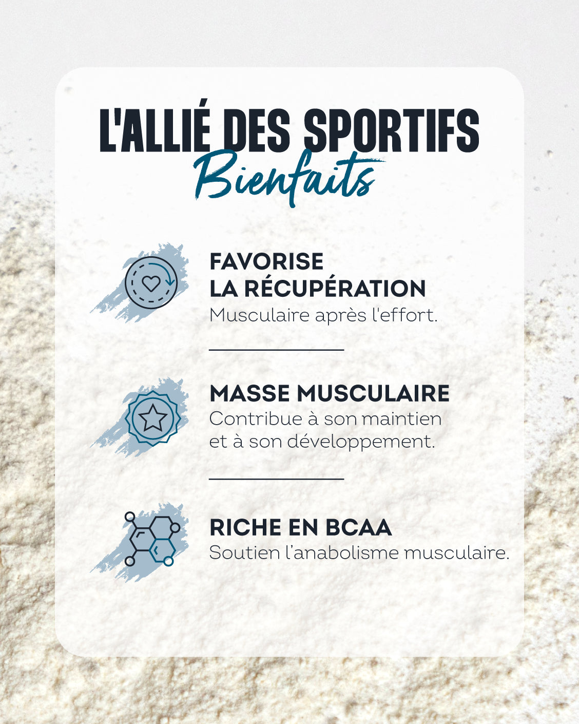Avec 25g de protéines par portion, elle contribue efficacement à la synthèse des protéines musculaires, au maintien et à la croissance de la masse maigre.