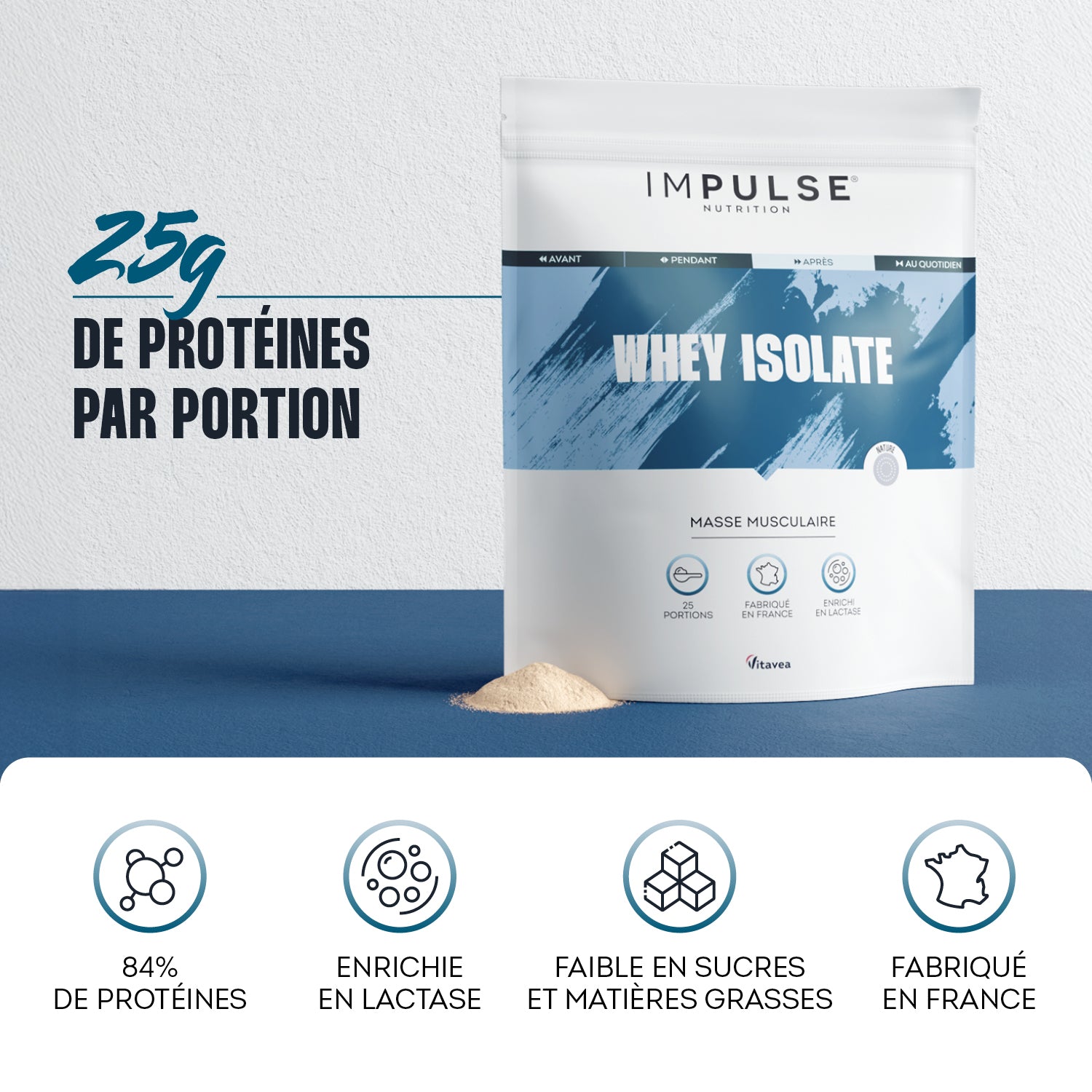 La WHEY ISOLATE IMPULSE NUTRITION est votre alliée pour développer votre masse musculaire et répondre à vos besoins en protéines. Une formule puissante, pure, pour des résultats visibles.