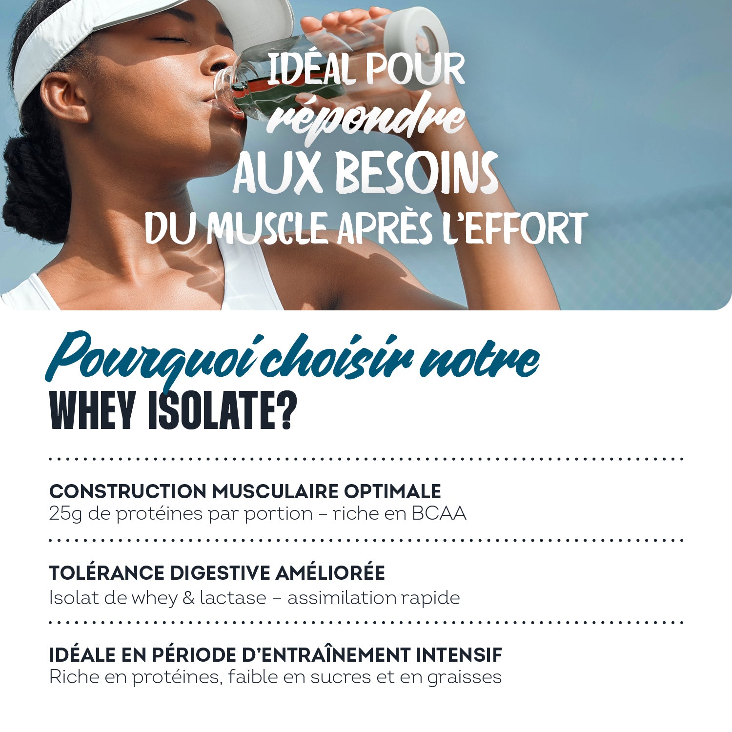 Issue d’un procédé de filtration avancé, l’isolat de whey est une protéine d’une grande pureté, riche en acides aminés essentiels, notamment en BCAA.
